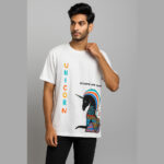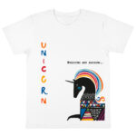 Text on the left side written vertically: “UNICORN” in bright orange, blue, and red letters.