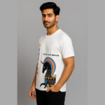 Men Printed Round Neck Cotton Blend White T-Shirt. Premium quality