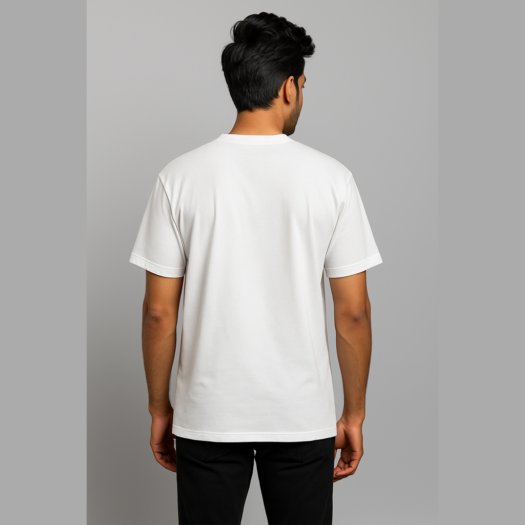 Men Printed Round Neck Cotton Blend White T-Shirt. Premium quality