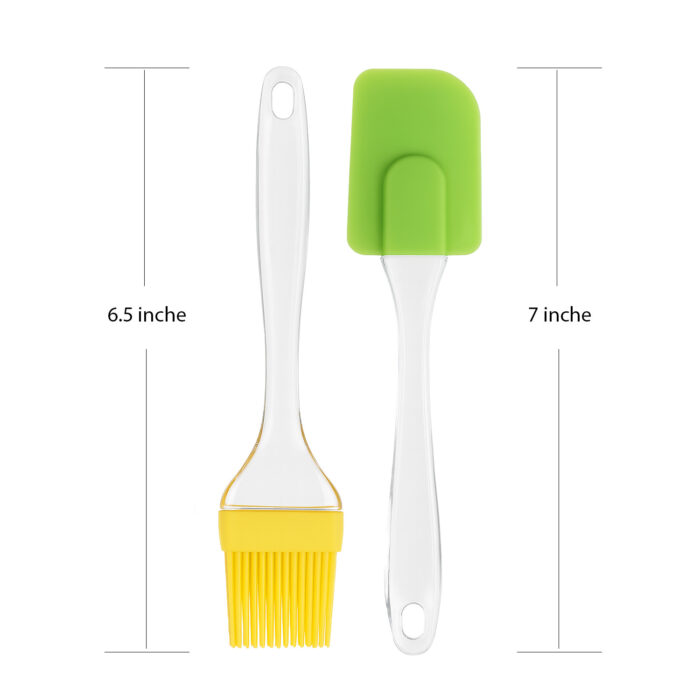 Silicon brush has extra durable silicone that will never warp or damage your cookware, this convenient set promises to make your cooking life a breeze, whether you are a seasoned chef or a complete beginner. Silicone spatula and pastry brush set is ideal for scraping, basting, barbecues, party pies, quiches, tarts, small cakes or any similar uses. The silicone basting / pastry brush are designed to easily spread marinades, butter or other liquid making the task very simple. This basting brush is great for also spreading glazes on desserts.