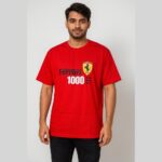 The T-shirt is made of soft cotton fabric, giving it a comfortable and breathable feel, ideal for casual wear or motorsport enthusiasts. Its vibrant red color and bold branding make it a standout piece for any Ferrari fan.