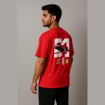 Men Printed Over Size Cowl Neck Cotton Blend Red T-Shirt